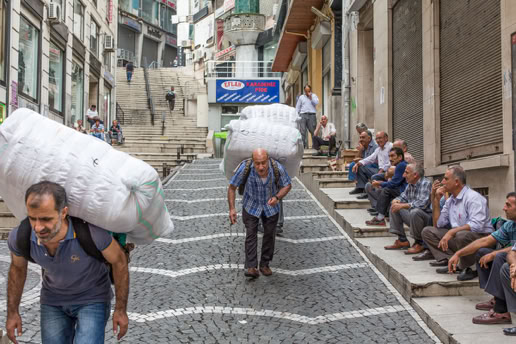 In dem Gewirr von Gassen zwischen Grossem Basar und Goldenem Horn transportieren Träger die Waren.