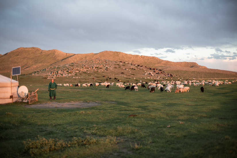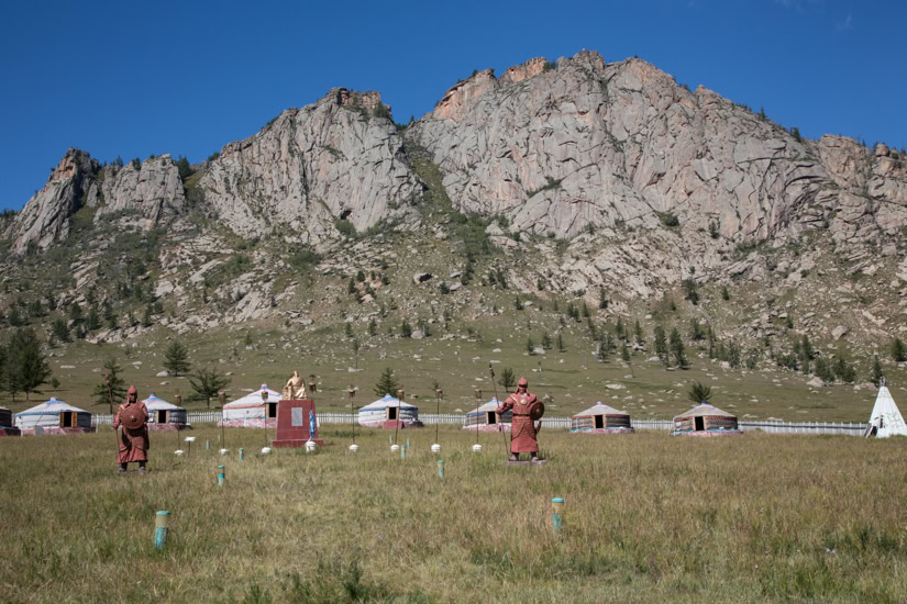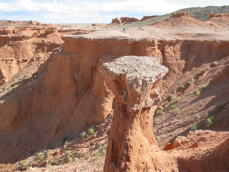 Mongolei, Wüste Gobi: Die flammenden Klippen von Bayanzag. Berg und Graslandschaft von Terelj, östlich von Ulan Bator.