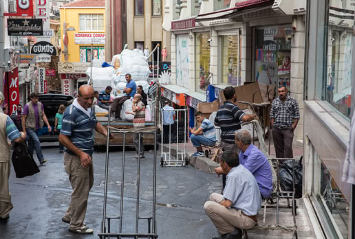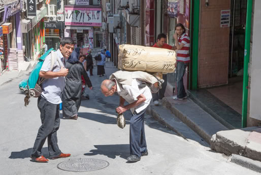 In dem Gewirr von Gassen zwischen Grossem Basar und Goldenem Horn transportieren Träger die Waren.
